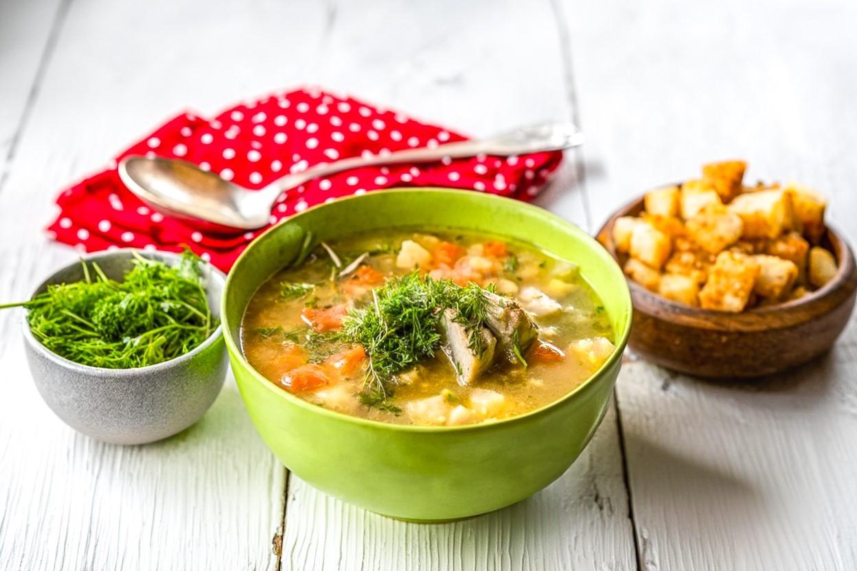 При подаче добавьте в тарелку чайнуюу ложку растительного масла и горсть сухариков. Можно дополнительно посыпать зеленью, от этого блюдо только выиграет.