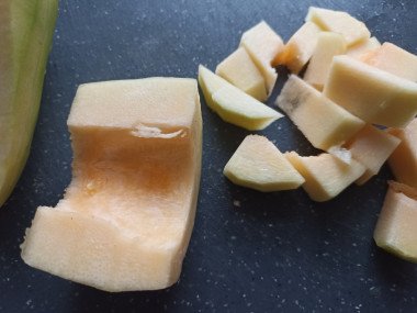 Молодой кабачок не чистим!!! Моем, трем на крупную терку и добавляем в суп. Солим и добавляем любимые специи. Если готовим для маленьких деток - специи не добавляем вообще. Варим 3 минуты.