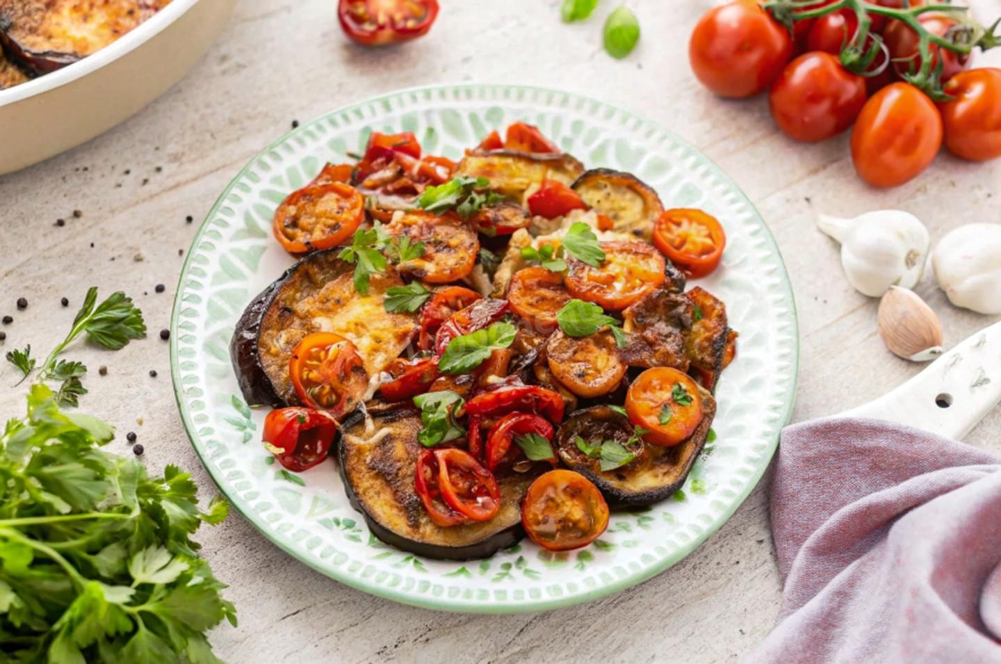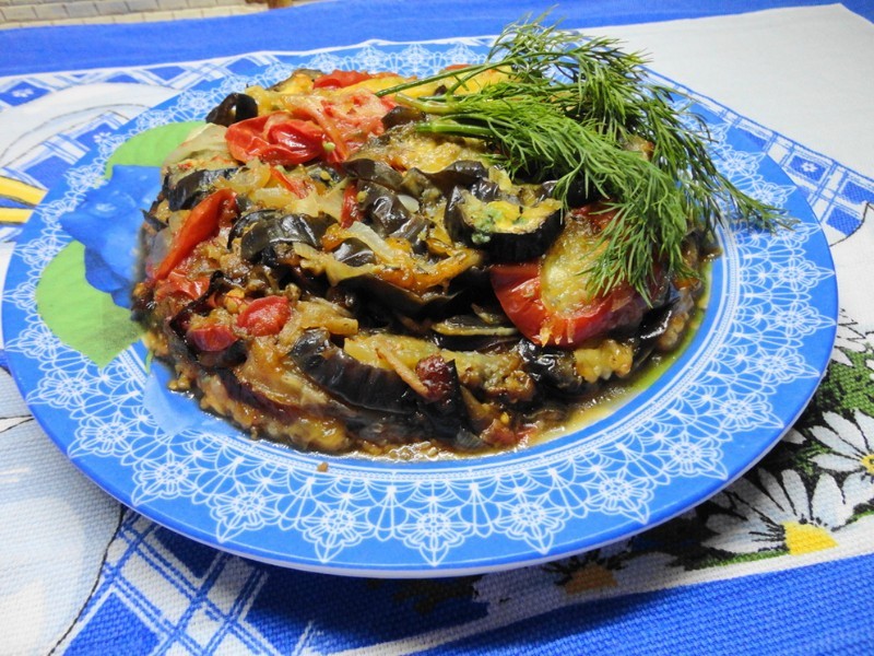 Баклажаны получаются нежными, помидоры и лук создают потрясающую основу. Чеснок и сушеный тимьян с чабрецом добавляют средиземноморские нотки.