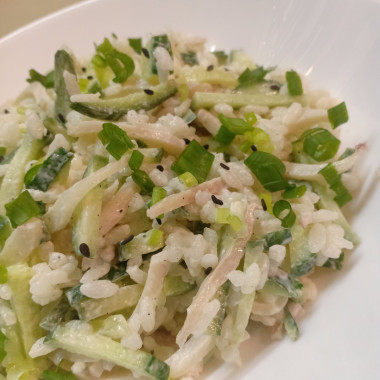 Довольно нежный, по весеннему освежающий и очень приятный салатик. Для "изюминки" при варке риса добавила немного рисового уксуса. Спасибо за рецепт.