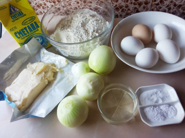 Луковый пирог-отличная закуска к крепким напиткам. Тесто охлаждаем в течение часа-пока сделаем начинку. Но можно и дольше подержать, ничего страшного с ним не случится.