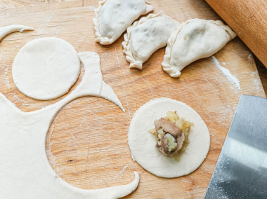 Тесто получилось очень эластичное, мягкое, приятное в работе. Вырезала заготовки стаканом диаметром 8 см. У меня получилось 42 вареника. При варке вареники не расклеились. Получилось очень вкусно.