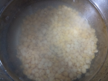Для начала подготовьте ингредиенты по списку. Какую тушенку лучше выбрать для супа? Тушенку можете брать из говядины или свинины. Желательно высшего сорта, с большим содержанием мяса и меньшим - жира. Воду лучше используйте фильтрованную или бутилированную. Вода из-под крана может придать блюду неприятный характерный привкус.Шаг 2. Как правильно сварить горох для супа?
