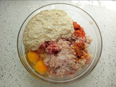Фарш я использовала свинину с курицей и добавила еще немного молотого кориандра, а также вместе с луком измельчила 3 зубчика чеснока. Котлетки получились потрясающе вкусными и мягкими.