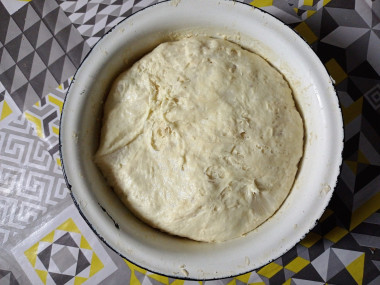 Тесто хорошо подошло, увеличилось в объеме почти в 2,5 раза. Я взяла самую большую миску, но все-таки тесту места не хватило, но оно и не убежало.