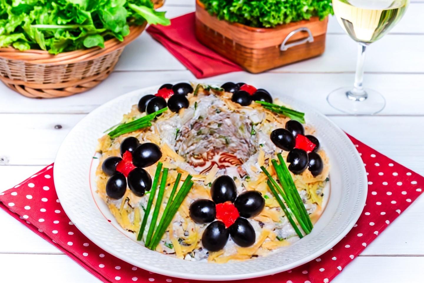 В некоторых регионах этот салат называют «Грибным гнездом» или «Лесной сказкой». Интересно, что если заменить курицу на солёную красную рыбу, получится совершенно новый, но не менее вкусный салат — «Морской».