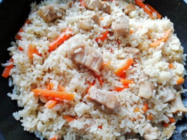 Готовила плов не в казане, а на сковороде, но получилось очень вкусно! Мясо хорошо разварилось, рис стал просто изумительный. Муж ел и нахваливал!