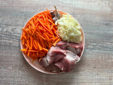 Рис тщательно промойте до прозрачной воды. Залейте холодной водой и оставьте на 30 минут. Затем воду слейте. Замачивание риса перед варкой убережет его от разваривания. Рис лучше всего выбрать длиннозерный м малым содержанием крахмала. С ним плов получится рассыпчатым. С выбором риса поможет статья по ссылке в конце рецепта. У меня золотистый пропаренный рис.