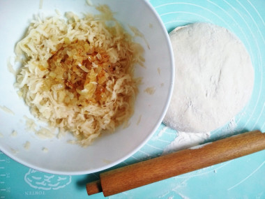 Натрите картошку на средней терке. На крупной останутся слишком большие кусочки, которые могут не успеть провариться. Следом натрите луковицу. Вы также можете приготовить начинку в блендере. Хорошенько отожмите картофельную массу руками, лишнюю жидкость слейте.