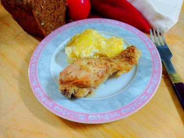 Маринованная курица в кефире в духовке готовится очень просто, а получается безумно вкусно. У меня были все необходимые продукты, так что маринад я приготовила, не отступая от рецепта. Для этого рецепта я взяла куриные голени. Мариновались голени около двух часов. На запекание хватило одного часа.