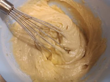Затем высыпала в жидкую смесь и получилось довольно густое тесто.