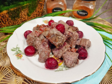 Очень необычный и в тоже время такой простой рецепт. Люблю необычное сочетание в готовке. Интересно поэкспериментировать и с вишней и с другими ягодами-фруктами. Мне кажется неплохо будет и со сливой, сколько замечательных сливовых соусов есть к мясу, поэтому думаю и в данном рецепте она его не испортит.