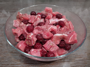 Заинтересовал рецепт мяса с вишней. Решила попробовать и приготовить мясо на ужин. Вишня у меня была замороженная без косточек. Перед приготовлением я её разморозила.