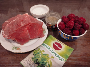 Как запечь мясо с вишней? Подготовьте нужные ингредиенты. У меня говяжья вырезка, вы можете взять любое мясо, с любой части туши, главное, чтобы без костей. Вишня у меня свежая, но сюда подойдет и замороженная, и консервированная - просто слейте с нее лишний сок.