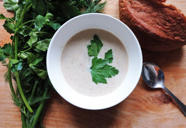 Готовый суп-пюре налейте в тарелку и подавайте к столу в горячем виде. Дополнить суп можно сухариками. Приятного аппетита!