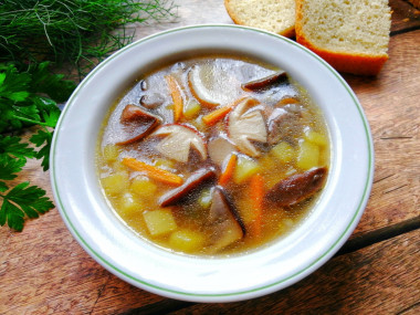 Суп получился очень ароматный. Бульон - насыщенный с ярким вкусом грибов. Ну очень вкусно! Грибы я нарезала довольно крупными дольками, в супе они остались упругими, выглядели очень аппетитно.