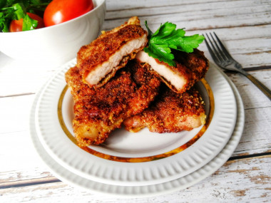 Подавайте шницели в горячем виде, дополнив блюдо овощным салатом или соусом. Приятного аппетита!