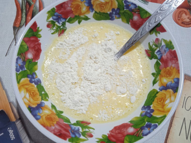 Яйца хорошо помойте, вбейте их в миску. Добавьте туда же молоко, муку, по вкусу посолите и сдобрите специями (я взяла только молотый черный перец).