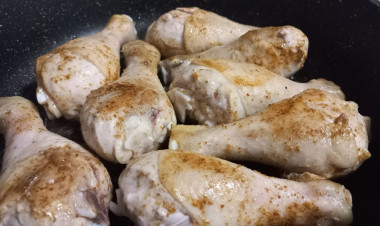 В сковороде разогреваем растительное масло и обжариваем до румяной корочки бедра с двух сторон.