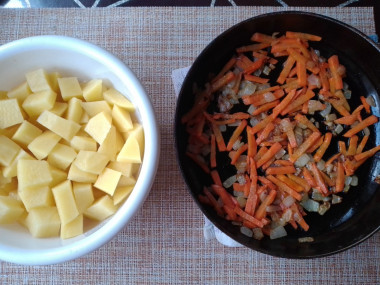 На сковороде разогрейте растительное масло. Обжарьте измельченные овощи на сковороде на растительном масле в течение примерно 10 минут на среднем огне. Подробнее о выборе сковороды и масла для жарки читайте по ссылкам под шагами.