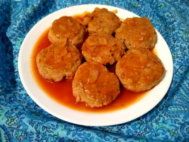 Готовлю такие котлеты в томатной подливе вот по такому рецепту.