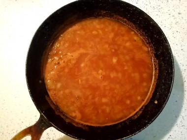 К ужину нажарила большую сковороду рыбных котлет. А к ним приготовила простой, но вкусный соус. Как и рекомендуется, лук жарила на той же сковороде, что и котлеты. Томатную пасту развела в воде в мерном кувшине. Соус довела до кипения, посолила, поперчила и выложила в него котлеты. У меня получилось много томатного соуса для котлет, как раз хватило. Тушила 20 минут на медленном огне. Вкусно, пряно, сочно, томатно!