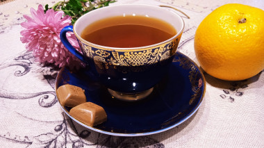 Люблю приготовить для себя вкусный чай, на этот раз поделилась с мужем) Заваривала чай в обычной пол литровой банке, чайник мой был занят. Выложила все ингредиенты, накрыла крышкой и укутала в плед. Настаивала так же 15 минут. Чай получился не очень темным, видимо кислота апельсина "съела" цвет) Еще заметила, при процеживании сквозь сито прошли мелкие крупинки цедры. В следующий раз лучше натру ее на крупной терке или мелко нарежу ножом. Но в принципе это не критично, вполне можно и так попить) Чай получился такой солнечный, оранжевый, придает позитива в хмурую погоду. Вкус очень насыщенный! Апельсин чувствуется даже больше, чем сам чай. И мне и мужу чай понравился! Корица и гвоздика создают невероятный аромат. Я уже не говорю об аромате апельсина! Вкусно, советую всем приготовить этот чудесный чай! Спасибо за рецепт!