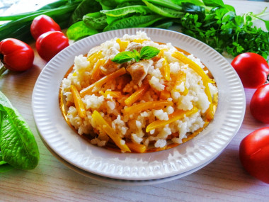 Я тоже готовлю по подобному рецепту, только иногда вместо куриного филе кладу или свинину или говядину, смотря что есть в наличии. Пло получается очень вкусным и сытным, только вот у меня никак не получается приготовить его рассыпчатым.