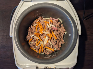 Гуляш из сердца готовлю в случае, когда хочется красного нежирного мяса. Главный секрет в том, чтобы как следует растомить сердце при низкой температуре, поэтому я использовала мультиварку с толстыми стенками. Также подойдёт толстостенная кастрюля. В рецепте понравилось недолгое время приготовления.