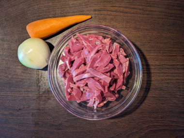 У меня было отваренное свиное сердце (варила его в скороварке разрезав на куски с солью и специями 2 часа). Решила приготовить из него гуляш на второе.