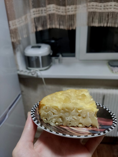 Готовила эту запеканку на завтрак. Использовала вчерашние макароны, поэтому яично-молочную смесь добавляла на глаз. Это отличный вариант для того, чтобы облагородить вчерашний ужин. Я приготовила не сладкую запеканку. Дополнительно добавила черный перец и сверху посыпала натертым твердым сыром. Запекала до подрумянивания верха. Получилось очень вкусно! Сыр снизу был расплавленный и тянулся, а сверху румяная корочка. Макароны прекрасно схватились со смесью. Запеканка получилась вкусной, я люблю такие нежные сочетания. Сытное и красивое, в то же время простое блюдо. Отличный рецепт!