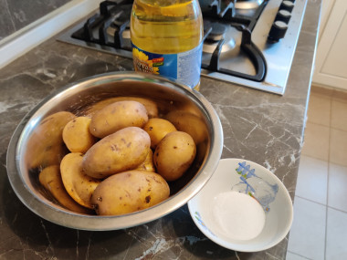 Как пожарить картошку фри на сковороде в домашних условиях? Подготовьте необходимые продукты. Лучше всего подойдёт молодой картофель. Желательно, чтобы он был удлиненной формы и достаточно крупный, такой картофель будет легче резать длинной тонкой соломкой. Масло может быть любое растительное: подойдет и оливковое, и кукурузное, и рапсовое масло. Но оно обязательно должно быть рафинированное, без запаха. В противном случае, масло будет пригорать.