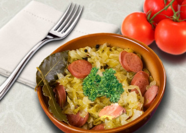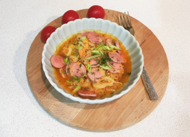 квашеная капуста тушеная с сосисками. sauerkraut stew with sausages