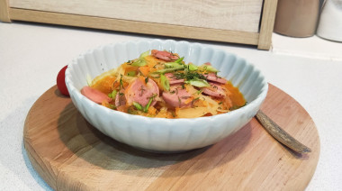 Поделюсь видео рецептом тушеной капусты с сосисками.