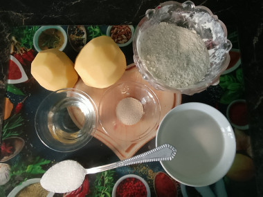 Как пожарить татарские беляши с картошкой на сковороде? Для начала подготовьте необходимые ингредиенты по списку. Муку берите высшего сорта. Сухие дрожжи можете заменить на свежие из расчета 1:3, то есть понадобится около 18 г свежих дрожжей. Тесто можете замешивать не только на воде, но и на молоке.