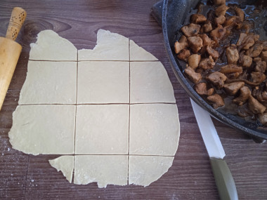 Тесто разделите на 3-4 небольших кусочка. Так будет удобнее раскатывать тесто.