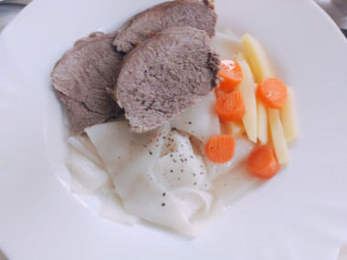 Муж ради интереса купил сочни и попросил приготовить бешбармак. Нашла этот рецепт бешбармака из свинины в домашних условиях. Баранину не очень люблю, а за говядиной в магазин идти не хотелось. Так что рецептик пришёлся как нельзя кстати. Готовится всё просто. Вкусно получилось очень! Муж доволен, я тоже. Спасибо за рецептик. Буду пользоваться еще!