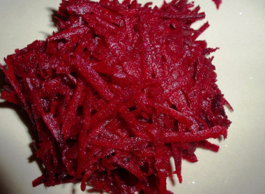 Свеклу хорошо помойте и очистите от кожуры. Натрите ее на крупной терке.