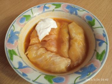 Пять голубцов сделала на пробу в микроволновке, как предлагает автор. Воды потребовалось больше, времени тоже, т.к. капуста осталась жестковата, а вот начинка за 12 минут была готова. Я обычно делаю к голубцам зажарку, а в этот раз ограничилась томатом и сметаной, но всё равно голубцы были чудо как хороши! Большое спасибо за рецепт Наталье Цыбульской!