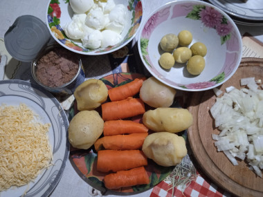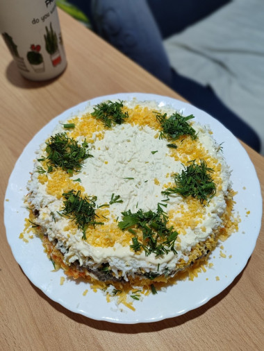 Всю свою сознательную жизнь делаю этот салат немного в другом порядке. Сначала рыба, потом лучок,картошечка, белок а сверху уже желток идет. И самое главное, каждый слой тру на мелкую терочку и не приминаю, оставляю его воздушным и смазываю каждый слой майонезом. Но на этот новый год обязательно попробую сделать, как тут написано. Спасибо за рецепты и за такой интересный сайт!