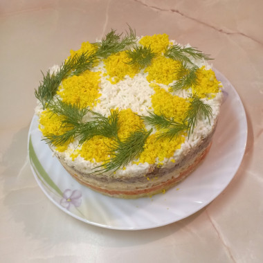 А эта мимоза действительно классическая, такая как в детстве бабушка делала. Никогда не надоедает, хоть к праздничному столу,хоть на ужин.