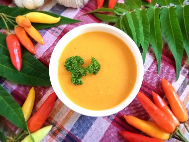 При подаче сдобрила суп лимонным соком. Муж в свою тарелку добавил хлопья острого красного перца. А дочке положила в тарелку кусочек вареной грудки. В общем всем добавки по вкусу). Суп просто огонь! Вкусный, невероятно ароматный, чуть с кислинкой и сладковатый одновременно! Консистенция нежная и однородная.