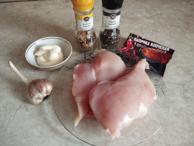 Как запечь сочные куриные грудки в духовке с майонезом? Для начала подготовьте необходимые ингредиенты. Для этого блюда можете взять куриное филе без кожи и костей, либо использовать целые куриные грудки с кожей. Их можно оставить целыми либо разрезать вдоль пополам. Но учтите, что вес грудок с костью будет больше, чем просто филе, поэтому рассчитывайте количество порций не по весу курицы, а по количеству половинок грудки (1 половинка - 1 порция).