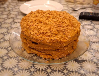 Единственное, держите коржи подольше, потому что напитывается кремом и мокреет, когда постоит в холодильнике