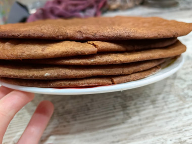 Выпекала коржи по 4 минуты. Первый корж я не накалывала вилкой. Он в нескольких местах вздулся. Последующие коржи я уже наколола вилкой, но они все равно немного вздувались. Даже не знаю почему. Хотя на вкус и качество коржей это никак не повлияло.