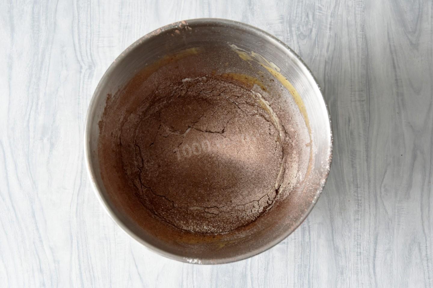 Кофе разотрите в порошок и вмешайте в тесто. Муку просейте, так как в ней могут быть плохо перемолотые частицы, а также во время просеивания мука насыщается кислородом. Добавьте просеянную с разрыхлителем муку. Замесите тесто, при необходимости подсыпая понемногу еще муки. Её может понадобиться чуть больше или меньше. О муке и ее свойствах подробнее можно прочитать в статье, ссылка в конце рецепта.