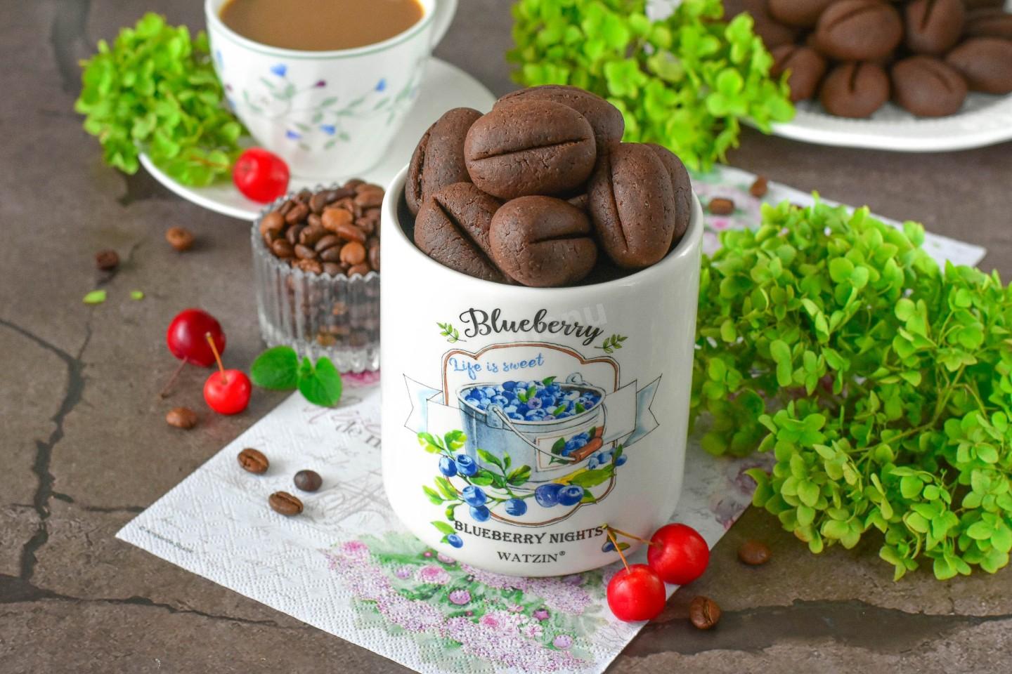 Печенье с кофе стало популярным в Европе в XIX веке вместе с распространением кофеен. Форма кофейных зерен символизирует любовь к кофе. В России такое печенье особенно полюбилось как accompaniment к чаю и кофе.
