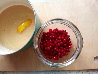 Захотелось мне сварить компот из брусники на зиму. Много банок не делала, взяла две банки объемом 1 и 0,5 литра. Банки простерилизовала в микроволновке, а крышки прокипятила. Количество воды рассчитывала исходя из объема банок, немного сиропа у меня осталось. Банки ниполнила брусникой примерно на 1/3. При варке сиропа добавила корочку лимона для улучшения вкуса и аромата. После того как закрутила крышки, банки перевернула и укутала в полотенце. На следующий день мы попробовали компот. Всем он понравился, даже дочке. Я еще и все ягодки съела, очень вкусно) Сахара многовато на мой вкус, но ведь это консервация. Просто разбавила кипяченой водой. Я не ожидала, что компот станет такого насыщенного цвета. Прекрасная заготовка!