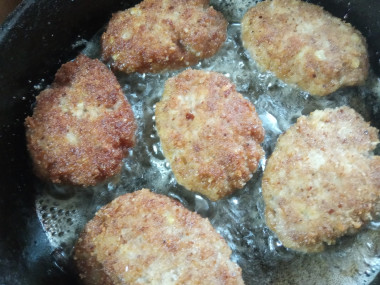 Руками слепите из готовое котлетной массы небольшие котлеты и обваляйте их в панировочных сухарях. Выложите их на горячую сковороду с добавлением небольшого количества растительного масла и обжаривайте на среднем огне до золотистого цвета.