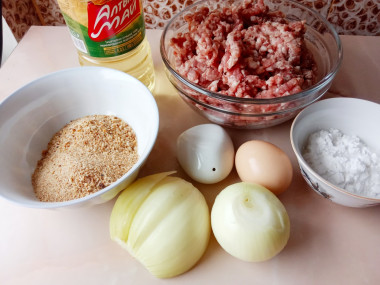 Как сделать котлеты без хлеба из фарша? Подготовьте необходимые ингредиенты. Свинину выбирайте с небольшим количеством жира, чтобы готовые котлеты были сочнее.